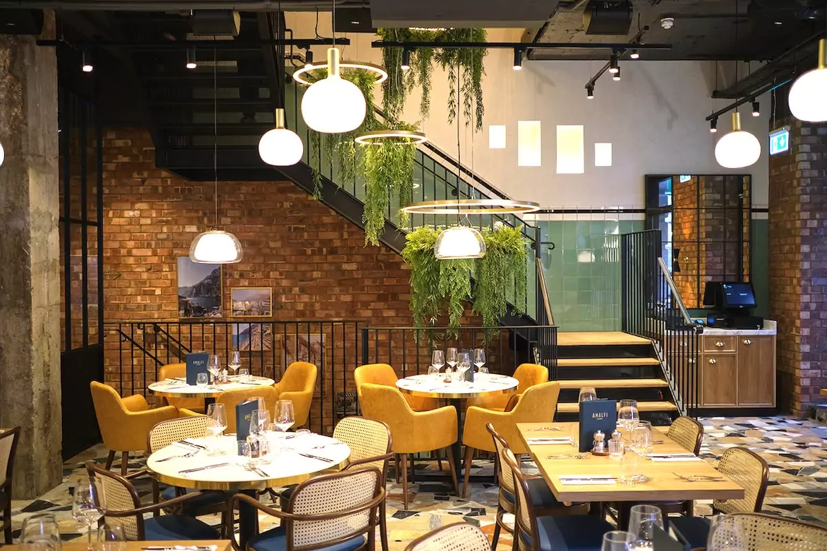 Amalfi is an all-day Italian brasserie. Amalfi brings together the care-free feeling of warm sunshine with great authentic Italian food and the outstanding hospitality of the Amalfi coast to the heart of central London.